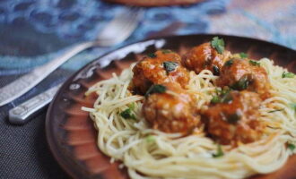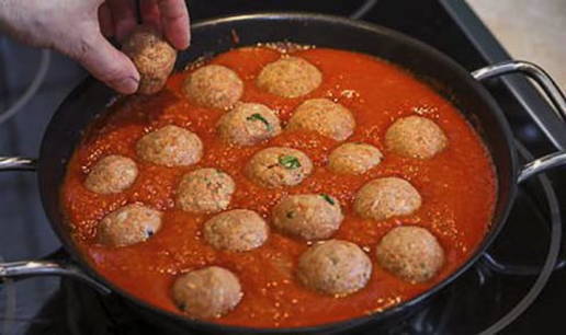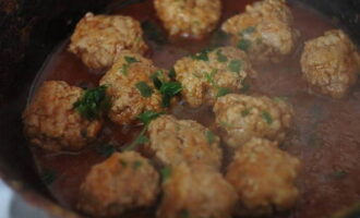 - Leg de gehaktballetjes in de saus, dek de pan af en breng de saus aan de kook. Zet vervolgens het vuur lager en laat 25-30 minuten sudderen.