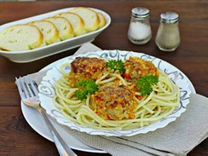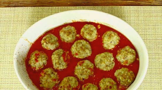 - Giet de tomatensaus over de gehaktballen, dek de vorm af met folie en zet terug in de oven. Bak het gerecht nog 30-40 minuten op 180 graden.