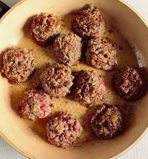 - Bak de gehaktballetjes in een voorverwarmde koekenpan 2-3 minuten aan elke kant.