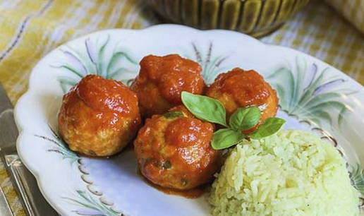 - Heerlijke gehaktballen met rijst in tomatenpureejus