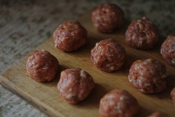 Maak kleine gehaktballetjes van gehakt, niet groter dan een walnoot.