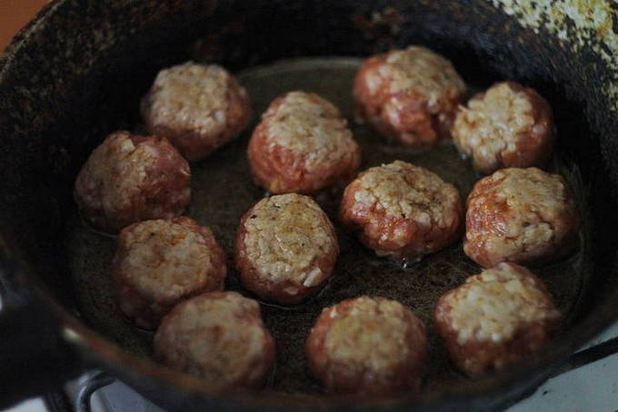 - Maak ronde gehaktballetjes van gehakt, leg ze in een hittebestendige vorm.