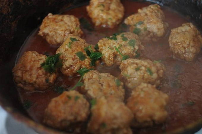 - Leg de gehaktballetjes in de saus, dek de pan af en breng de saus aan de kook. Zet vervolgens het vuur lager en laat 25-30 minuten sudderen.