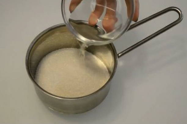 - Giet gelatine met twee eetlepels water en laat 10 minuten staan. Combineer een glas suiker met het resterende water en zet het mengsel op het vuur.