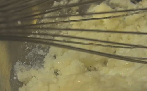 - Klop de massa vervolgens met een mixer, deze zal heel snel lichter en dikker worden.
