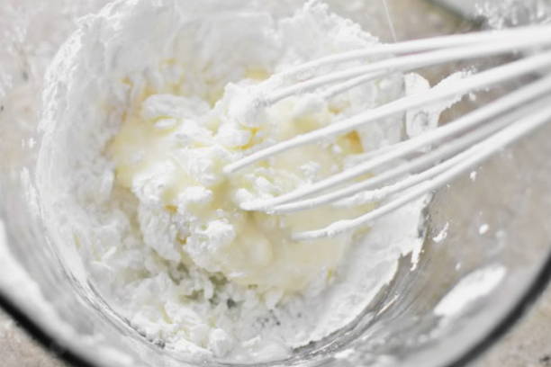 Eenvoudig wit glazuur voor taarten gemaakt van poedersuiker