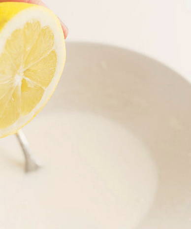 - Giet citroensap in kleine porties bij de poedersuiker en roer de ingrediënten door elkaar.