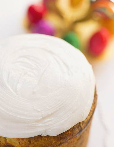 Suikerglazuur voor paascake gemaakt van poedersuiker en gelatine, die niet plakt of verkruimelt