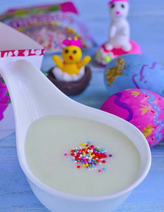 - Klassiek glazuur voor paascake met poedersuiker en eiwit