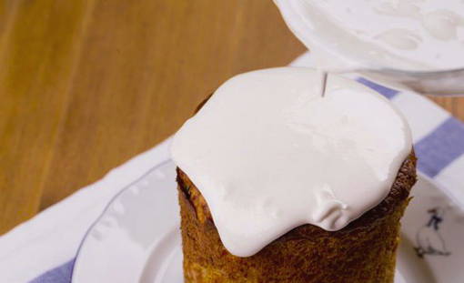 Suikerglazuur voor paascake gemaakt van poedersuiker en gelatine, die niet plakt of verkruimelt