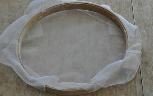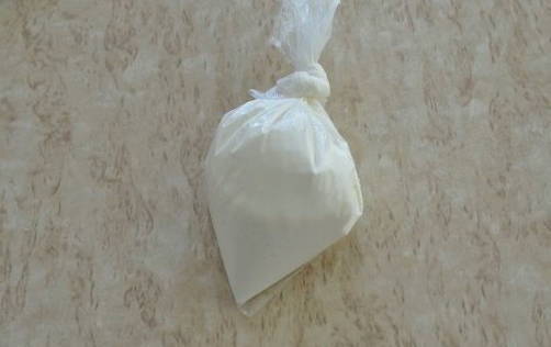 Daarna zeven we het poeder door kaasdoek om de vorming van klonten te voorkomen.