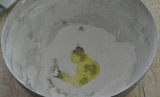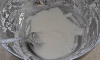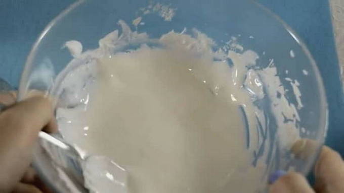 Voeg eiwit toe aan het poeder, meng alles grondig tot een gladde massa.