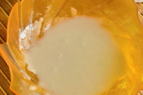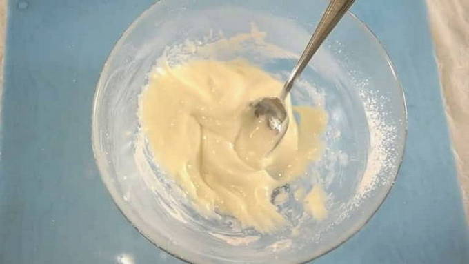 - Meng het glazuur grondig tot een gladde massa en zorg ervoor dat er geen klontjes ontstaan.