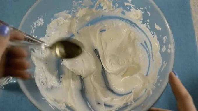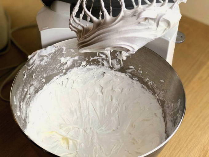 - Voeg geleidelijk de resterende poedersuiker toe en klop tot een gladde massa.