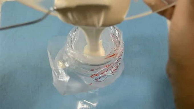 - We introduceren geleidelijk water, waardoor het glazuur de gewenste consistentie krijgt.