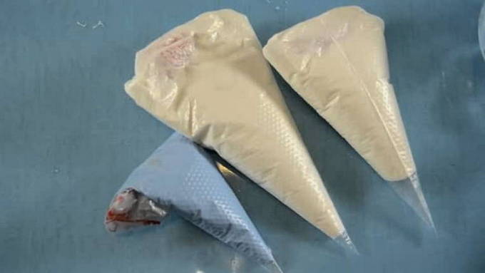 We schuiven het glazuur in een plastic zak. Knip de hoek van het pakket af. Alles staat klaar om versierd te worden!