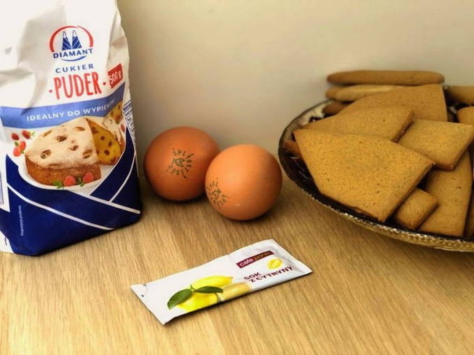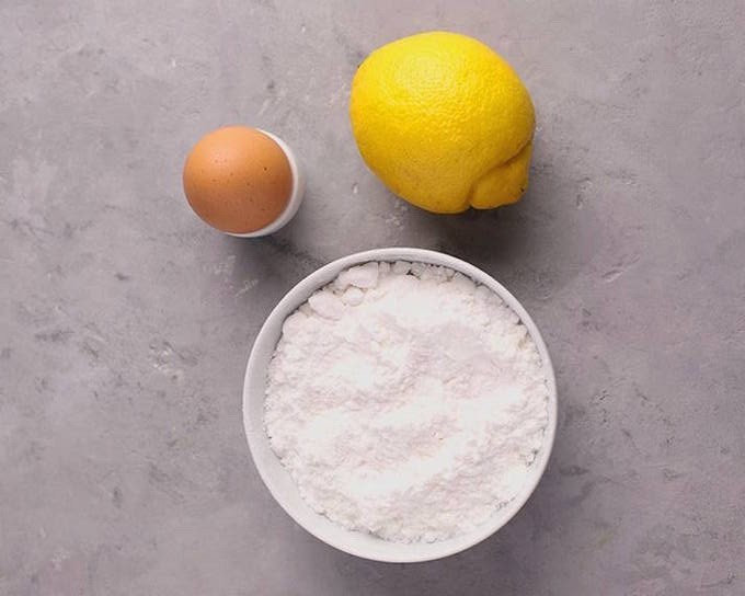 - Huisgemaakt glazuur voor peperkoek met poedersuiker en citroensap