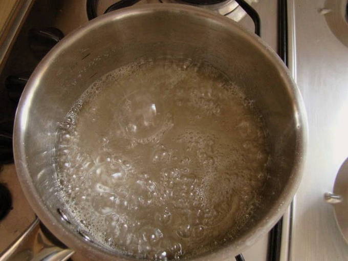 - Giet water en citroensap in een pollepel met een dikke bodem, giet er suiker in en zet het op hoog vuur.
