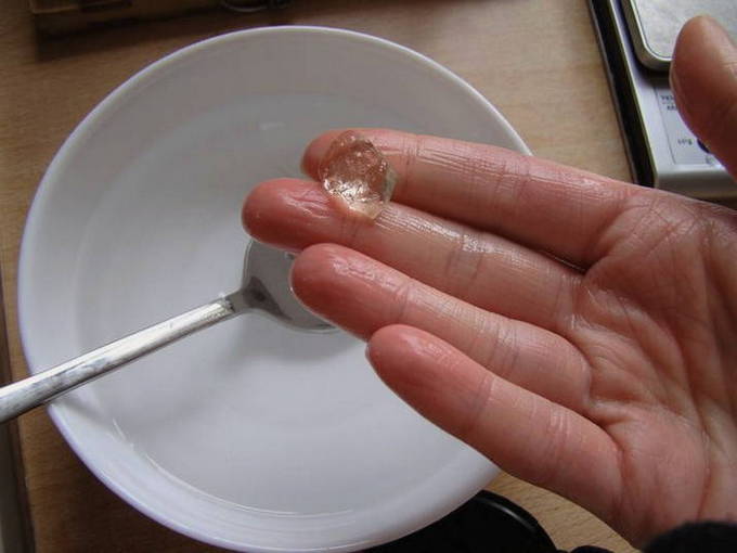 - U kunt de gereedheid van het glazuur op een andere manier controleren.Laat het glazuur uitlekken op een vlakke ondergrond. Het glazuur is klaar als het zijn vorm behoudt en niet vloeit.