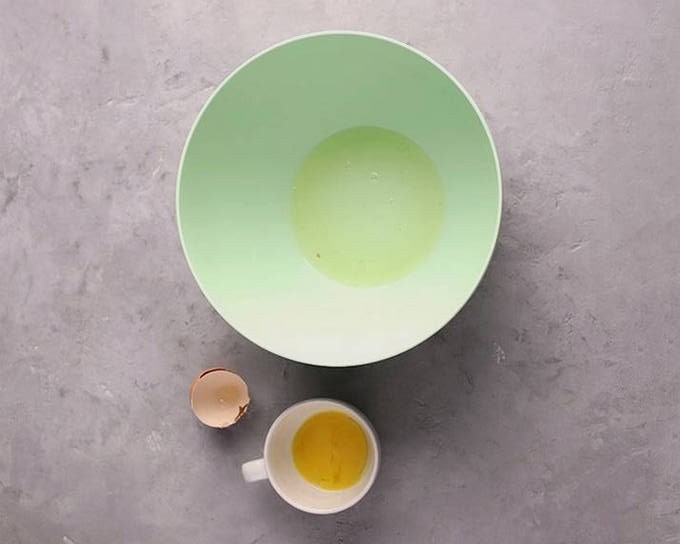 - Scheid het eiwit in een kom.