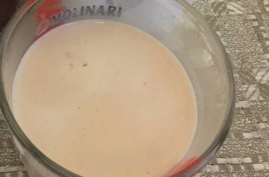 - Meng in een aparte kom de room en een eetlepel tomatensaus. Onze saus is klaar.