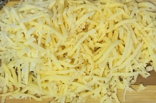 - Wrijf de harde kaas op een middelgrote rasp.