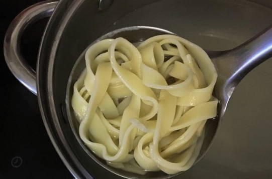 - Nu koken we de pasta. De tijd is afhankelijk van de aanwijzingen op de verpakking.