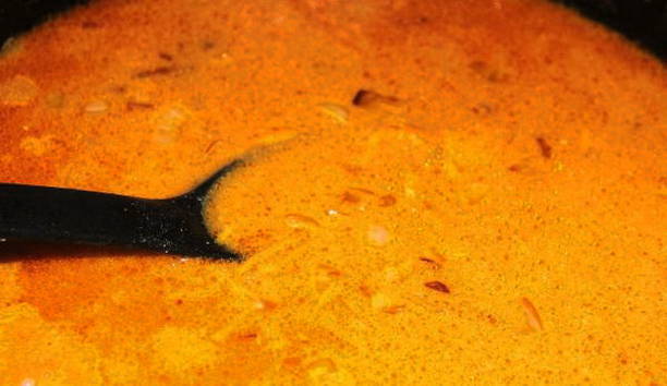 - Verhit plantaardige olie in een koekenpan en bak hierin gesnipperde uien en wortelen tot ze zacht zijn. Voeg vervolgens tomatenpuree, zure room toe en meng.