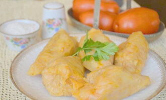 We koken lichte koolrolletjes snel, en als resultaat worden we erg mals, maar tegelijkertijd ook rundvlees, maar als je het vervangt door kip, neemt het caloriegehalte aanzienlijk af en kan iedereen, zonder uitzondering, genieten zo'n gerecht.