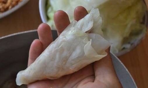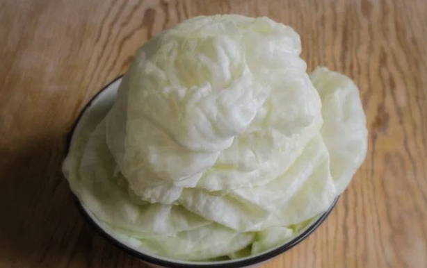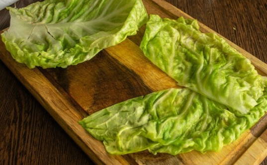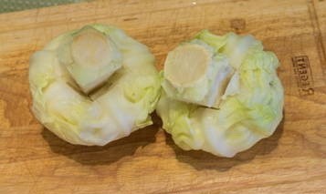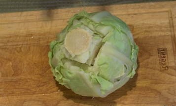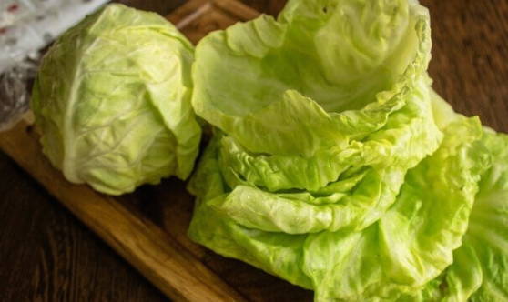 - Snijd een stronk van een licht afgekoelde koolkop en scheid de vellen voorzichtig.