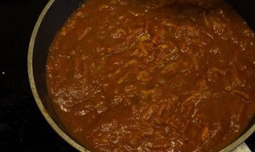- Wanneer de gehele inhoud van de pan actief begint te koken, breng de saus dan op smaak met suiker, zout, zwarte peper, kruidnagel, gember en kaneel. Roer alles opnieuw en kook ongeveer 5 minuten.