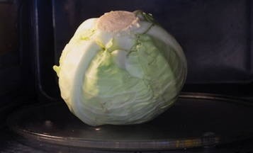 - We sturen de kool 10-12 minuten op vol vermogen naar de magnetron.