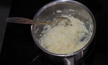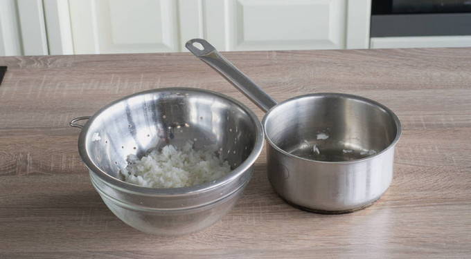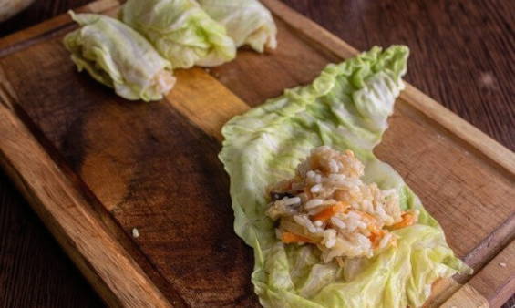 - Terwijl de koolbladeren zacht worden en afkoelen, kook je de benodigde hoeveelheid rijst tot de helft gaar is.