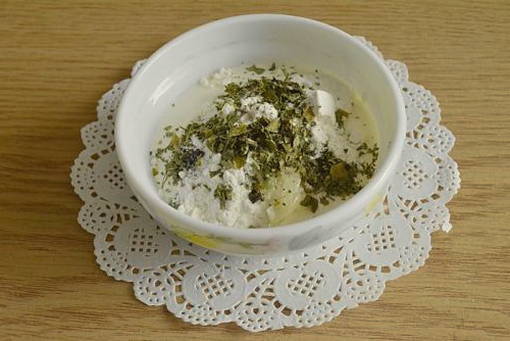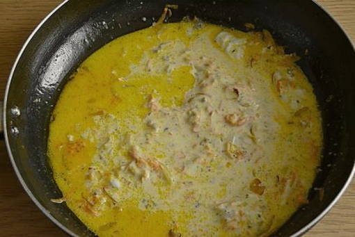 - Meng in een andere koekenpan zure room, water, zout, kruiden - meng en zet op een langzaam vuur om op te warmen.