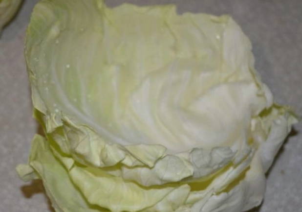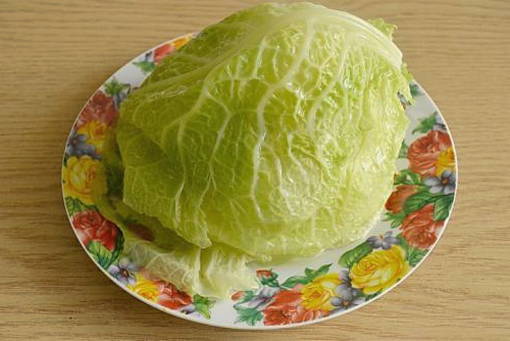 - We bereiden alle producten die nodig zijn voor de bereiding van gevulde koolrolletjes. We verwijderen de bovenste verweerde bladeren van de kool - ze zullen niet nuttig voor ons zijn.