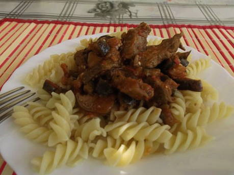 Een eenvoudig recept voor een voedzaam en heerlijk rundvleesgerecht. Aubergines passen perfect bij het vlees en laten het rijk en rijk smaken, terwijl gehakte tomaten zorgen voor een smakelijke en zachte jus.