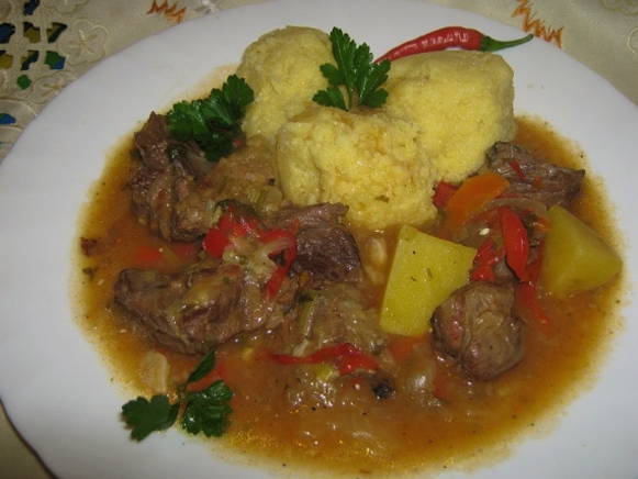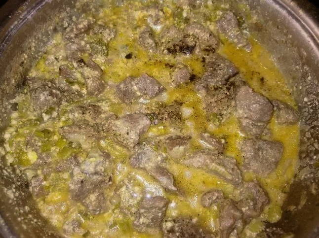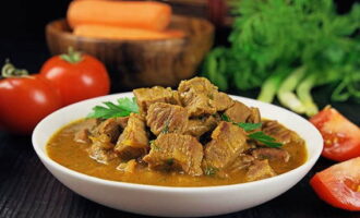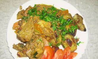 - Vul het vlees met een beetje water, voeg peper en zout toe en laat ongeveer een uur sudderen. Bestrooi het gerecht met kruiden en serveer. Eet smakelijk!