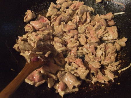 - Vul het vlees met soja- en oestersaus, roer en kook tot het gaar is.