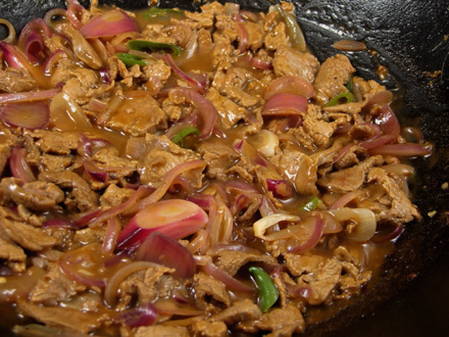 Na 5 minuten is het rundvlees in de jus klaar. Eet smakelijk!