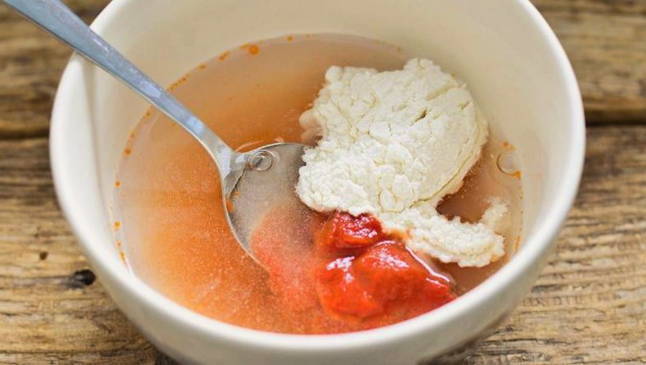 - Vul alles met zure room en verdun het met een beetje water.