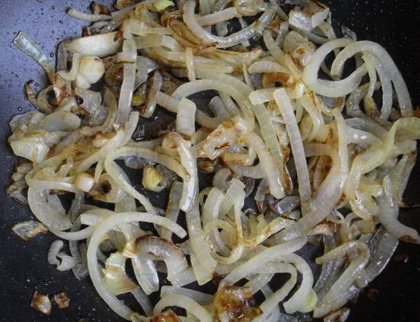 - Bak de uien in een koekenpan goudbruin.
