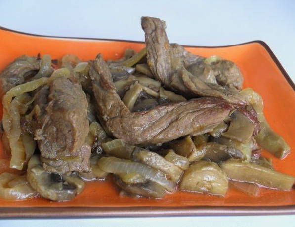 Een geurige en heldere combinatie van champignon- en rundvleesaroma's zal niemand onverschillig laten. Dit kan door champignons en vlees apart te koken en deze producten samen tot een minimum te beperken. Dit gerecht past goed bij elk bijgerecht, maar het smaakt vooral goed bij gekookte groenten.