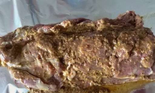 - Mals rundvlees varkensvlees gebakken in folie in de oven