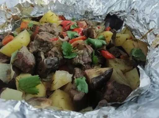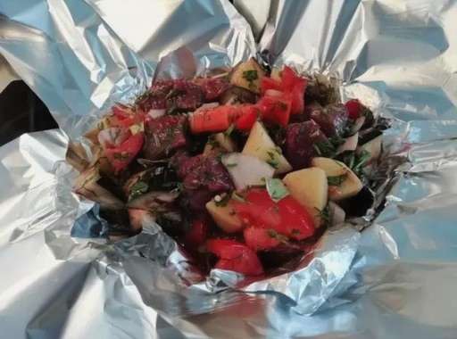- Sappig rundvlees gebakken met groenten in folie