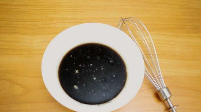 - Bereid de marinade voor. Giet sojasaus, plantaardige olie, citroensap, honing, kruiden en mosterd in een diepe kom. Meng grondig met een garde tot een gladde massa.