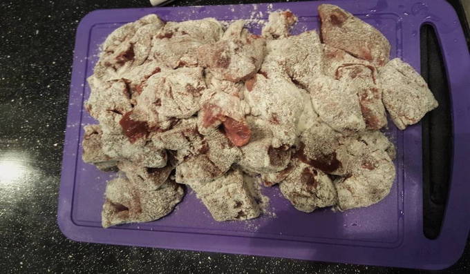 - Kook de bereide stukjes lever in zetmeel.