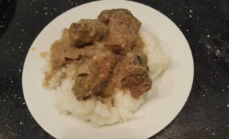 - Malse en sappige runderlever met champignons en groenten is klaar. Leg het gerecht klaar en serveer!