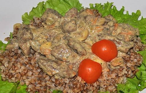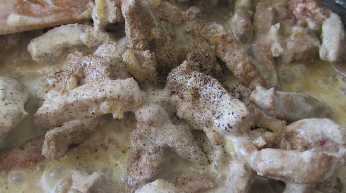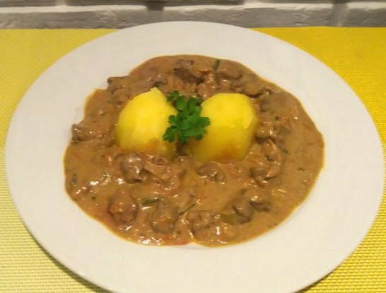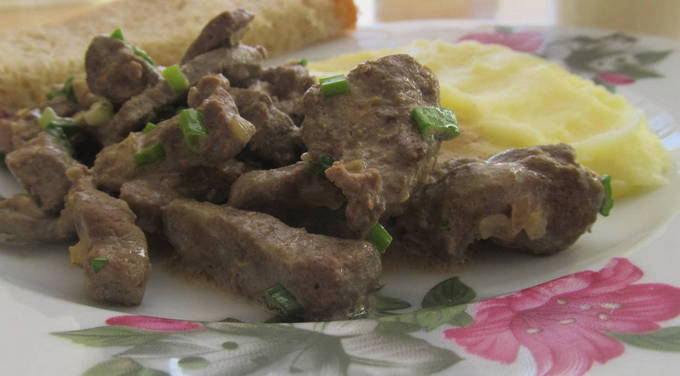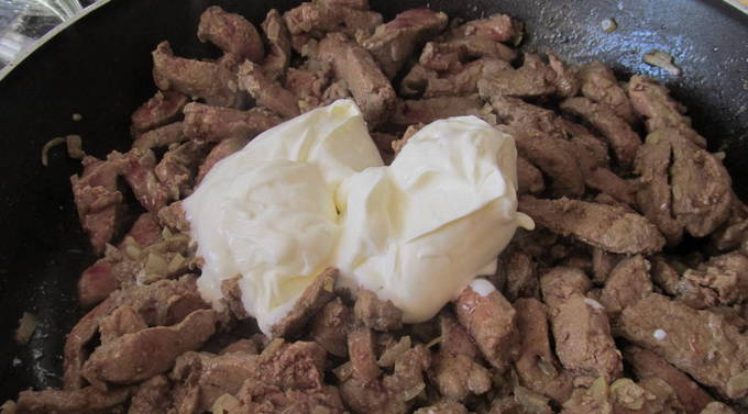 - De geurige lever in zure room is klaar. Serveer het met een bijgerecht!