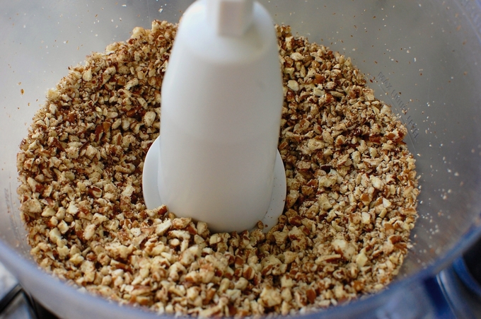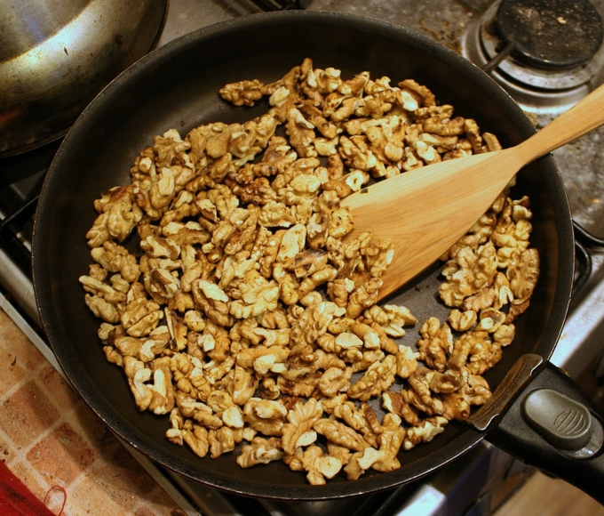 - Walnoten moeten met een oogje worden gehakt, vrij fijn, maar zodat ze er niet als meel uitzien.