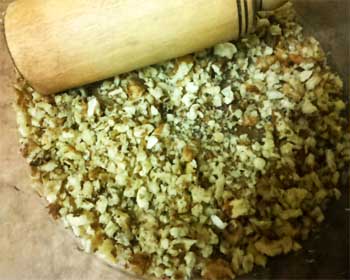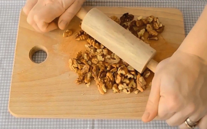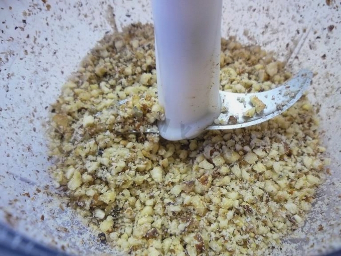 - We verpletteren walnoten met een speciale crush, als het er niet is, dan kun je een blender gebruiken.
